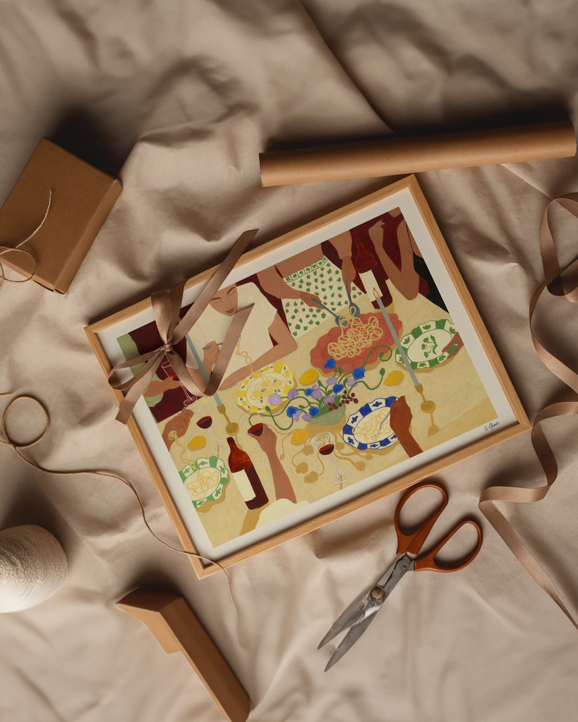 Carla Llanos is a Bristol-based Chilean artist that is easily inspired but feels a specifically strong connection with femininity, flowers, ceramics, and the simple things of everyday life. Joyful, Colourful, bright, and bold are the best words to describe her artistic style. The rich colour palettes and vivid scenes in her work inspire a sense of aliveness and uplifting positivity.